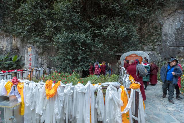 进入景区入口处,有着一棵千年树龄的菩提树,据植物专家的考察推断已有三千年以上的树龄。它穿越千年时光,在 巴拉 格宗这片神奇的土地上,傍倚峭壁,栉风沐雨千年而依旧郁郁葱葱,生机勃勃,繁茂生长,只有碗口粗的主干却爬满了400多平米的崖壁,让人无不对这神树的强盛生命力而赞叹,更为惊叹的是那只从菩提树干上神奇般长出的佛手。