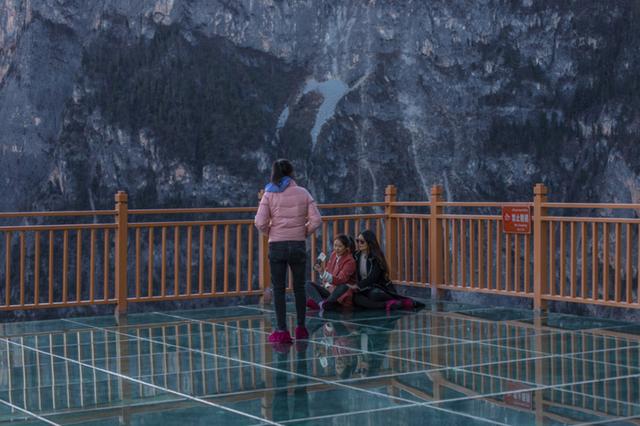 虽然这个玻璃平台不是很大,但是因为海拔十分的高,并且下方又是那纵横深切的大峡谷。所以我们大家想要站在这个玻璃栈道上,还是需要有一定勇气的。因为在这上面有这两种可能在等着我们,第一双就是那海拔3200多米的海拔!这会让大家的心跳略加快,第二个就是那峡谷地貌所带来的视觉震撼。