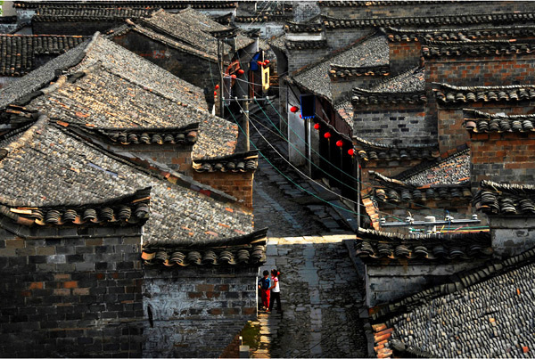 游览古镇的时候,站在江边,面江远眺,青山野渡,江水东流,令人心旷神怡,虽然在如今陆地运输占据主导地位的时候,赤滩古镇的地位不断的下降,但是从那整饬的卵石道、错落有致的马头墙间还可以感受到它曾经的辉煌。