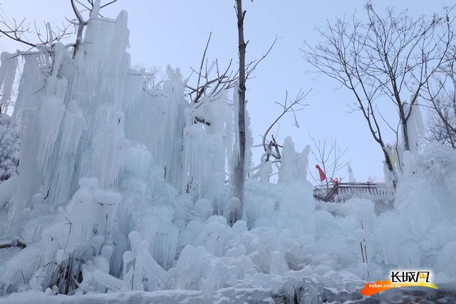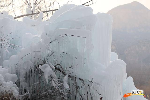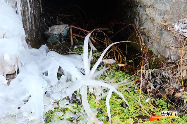 冰柱、冰笋、冰凌、冰花星罗棋布、形态各异,有的像瀑布,飞流直下;有的酷似大象汲水,憨态可掬;有的薄如蝉翼,晶莹剔透。长城新媒体记者 路娟 摄