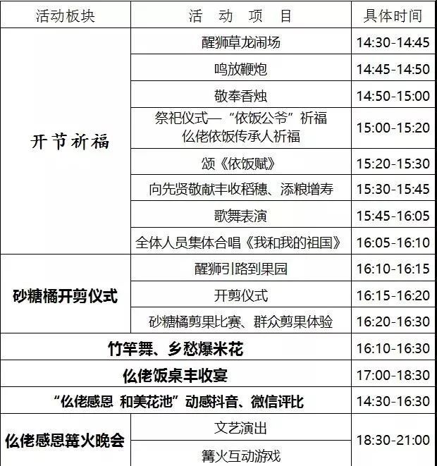 庆典怎么可能少得了吃呢?活动当天,村民会拿出自家拿手的菜色热情的招待来宾,一起为庆祝丰收举杯。