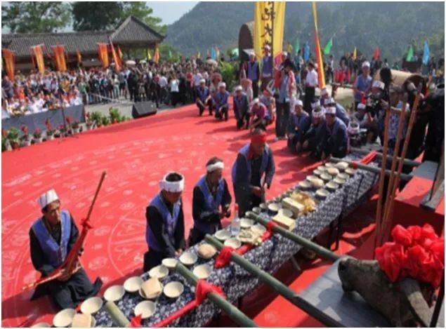 这是仫佬族依饭节传统项目,为的是敬告先贤,庆祝丰收的寓意。其中的“增粮添寿”环节,更是体现仫佬族人对老人们献粮添寿的美好祝愿。节日当天,不管是哪里的朋友,每个人都可以带着家里的一斤粮食,向着活动现场上的大米缸献粮,为自己家中的老人祈福增寿。