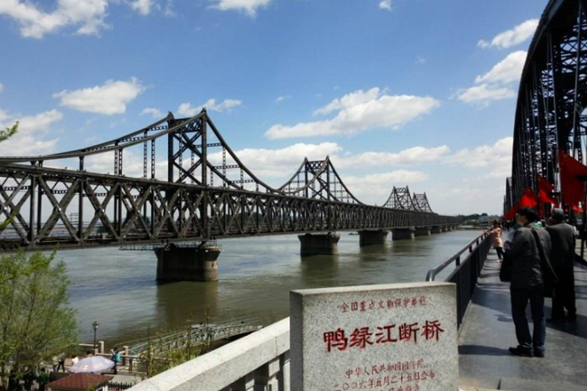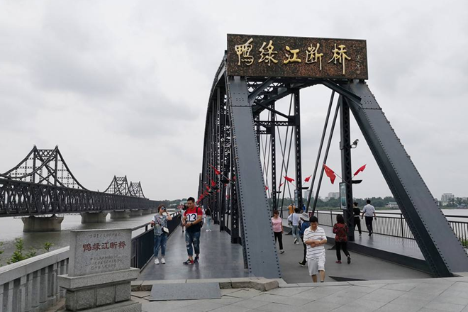 这两条大铁桥都是日本人建设的,一座建于1909年,是鸭绿江上的第一座铁路桥,目前为断桥;一座建于1937年,目前仍在使用中,叫做中朝友谊桥,是铁路、公路两用桥。如今来丹东旅游,走上断桥观看对面朝鲜老百姓朴素生活,已经成为很多中国游客的炫富行为。