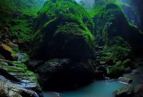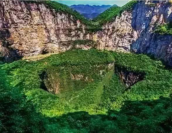 天坑地缝景区风景绮丽、空气清新,融山川、河流、奇峰、怪石于一体。