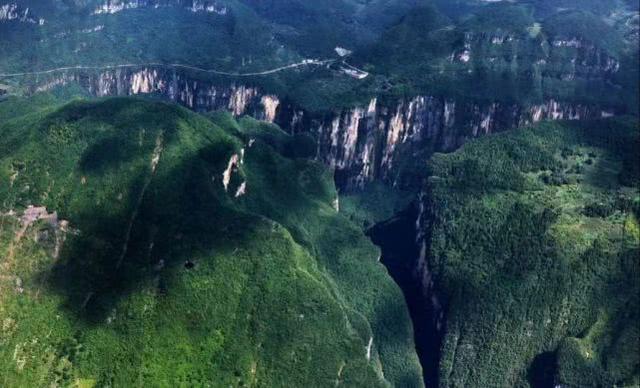 天井峡地缝,远远望去,宛如大抵裂开的一条大缝隙。