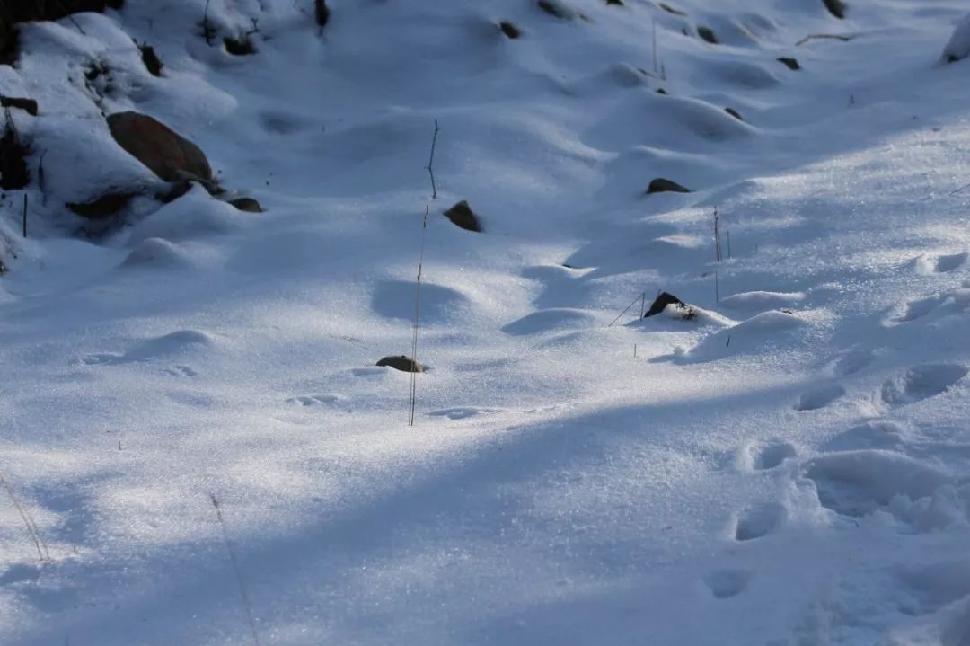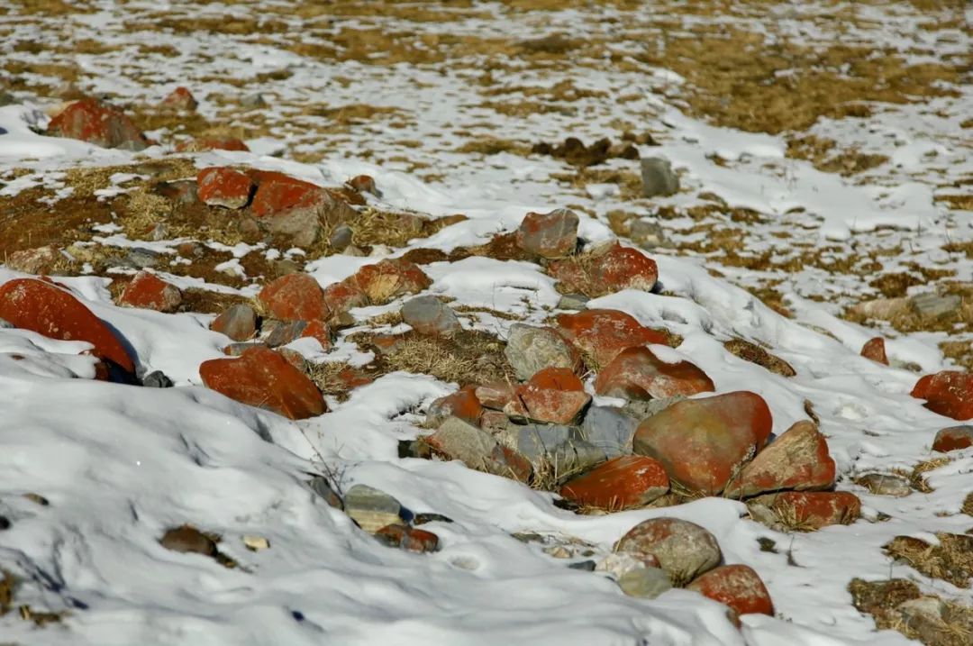 一下雪之后,整个河谷的红石都被厚厚的白雪覆盖,只露出一点点面容,别有一番雪里藏娇的羞涩感。