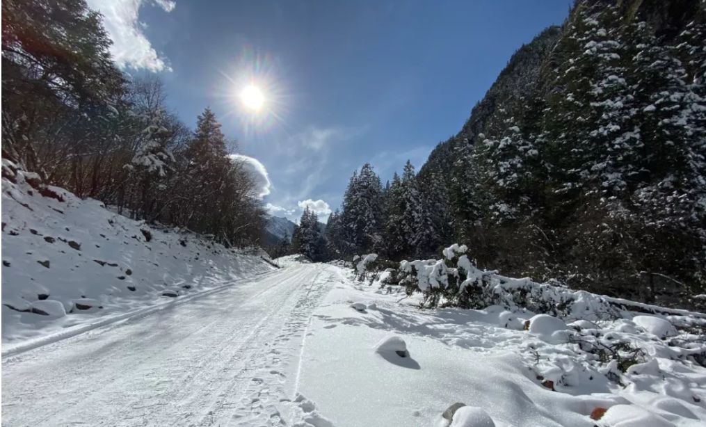 和成都周边彭州、都江堰、大邑等地的野生耍雪地相比,这里看到雪的机会更大,12月以来,理县都下了好多次雪了。