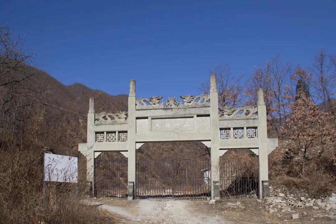 沟口立着一个牌楼,牌楼顶卧着四条龙,牌楼上写着“九锦山庄”四个大字。这牌楼被铁栅栏封了起来,汽车无法驶入。不过,牌楼边上尚有小径可供人行。