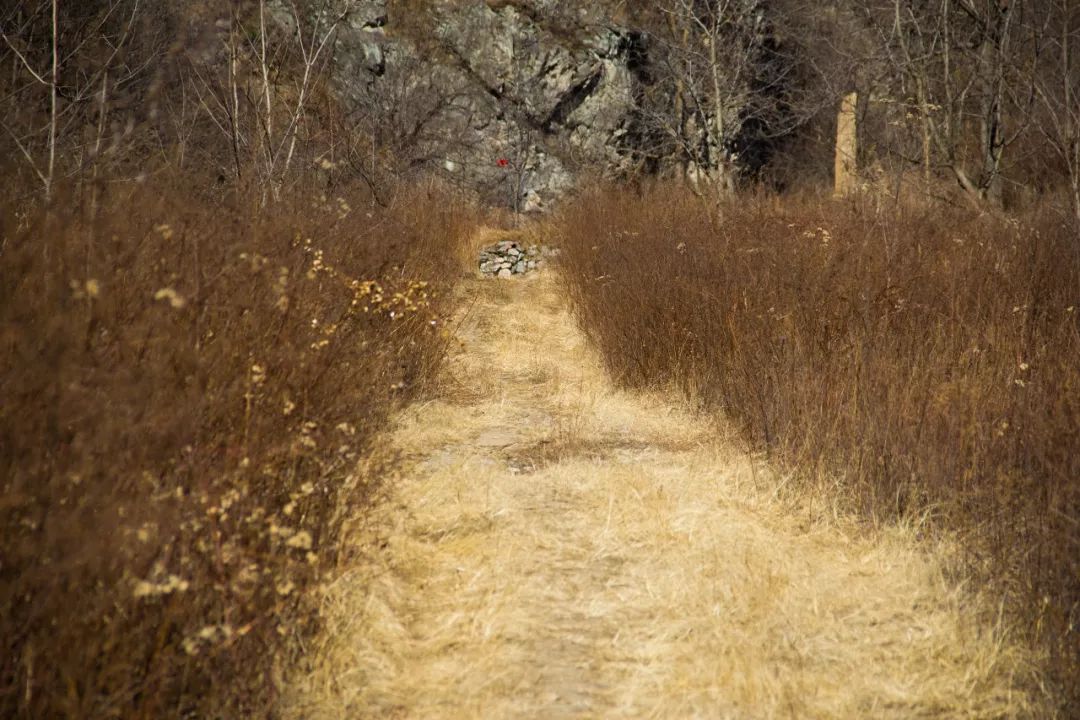 在寒冷的冬日里,当勃勃的生机从山中褪去,大山裸露出这样的一片片枯黄之时,山中的小径恐怕只有野兽还在行走。