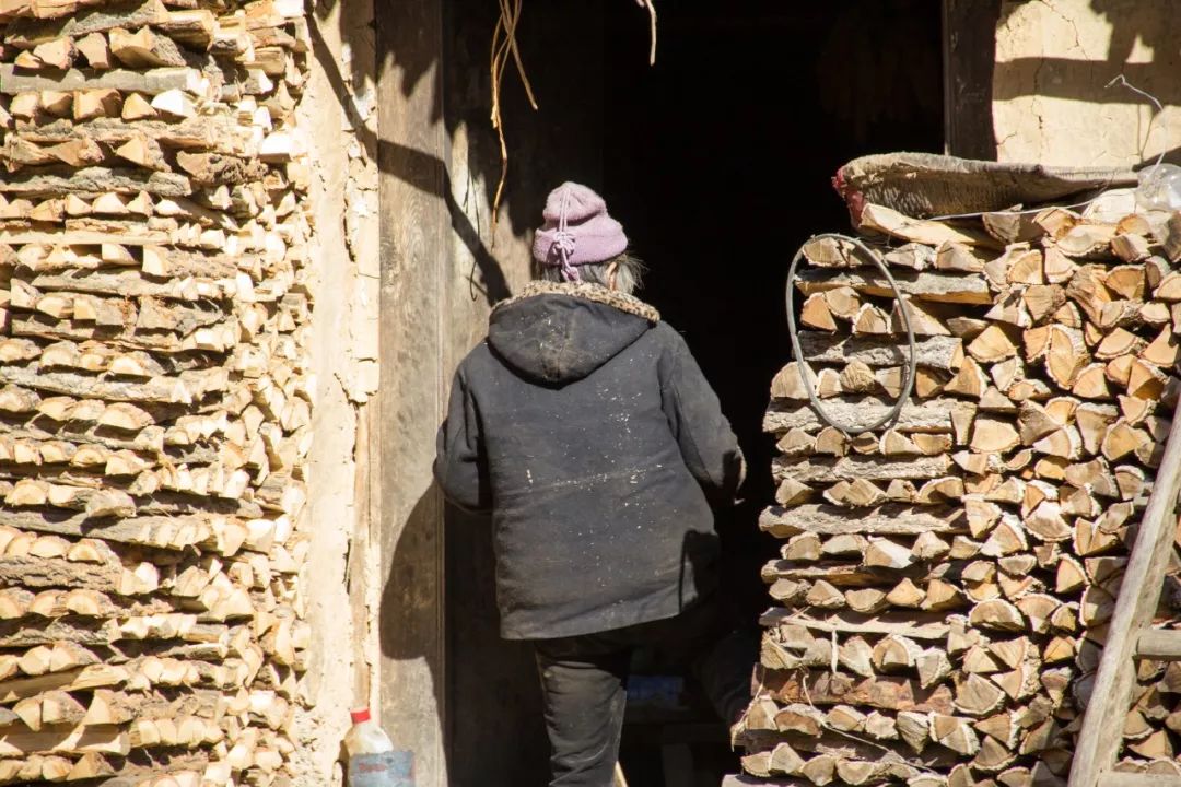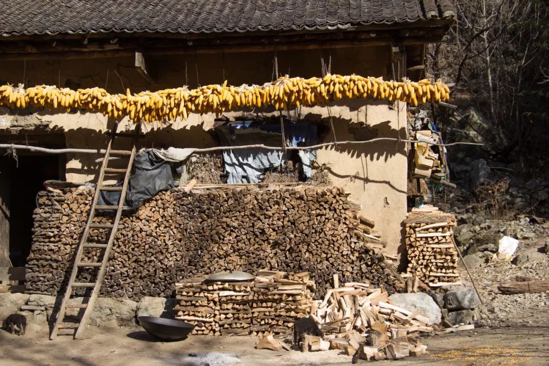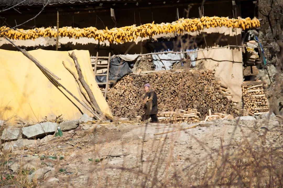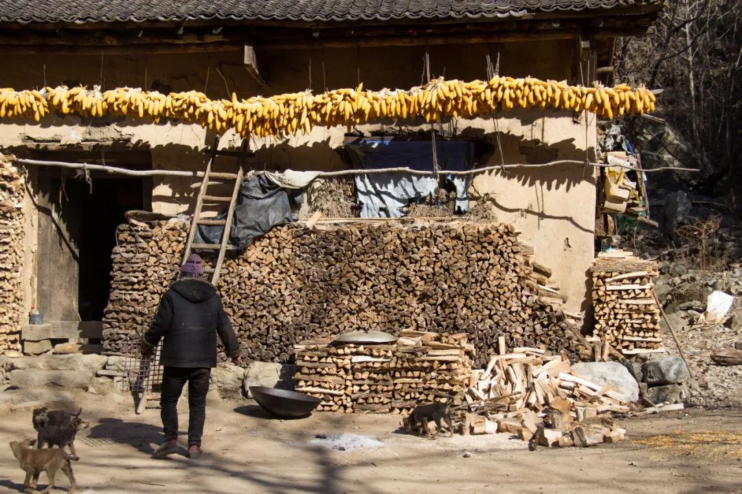 走到跟前,一群喂得圆鼓鼓、肥嘟嘟的土鸡,被吓得四处乱跑,扑腾扑腾从眼前跑过。房前,有土地一二亩,但因为是冬日,地里并无庄稼,再看房屋,只见屋檐下杂陈着各类生活用品,尤其是烧火做饭取暖使用的木材,整整一墙。