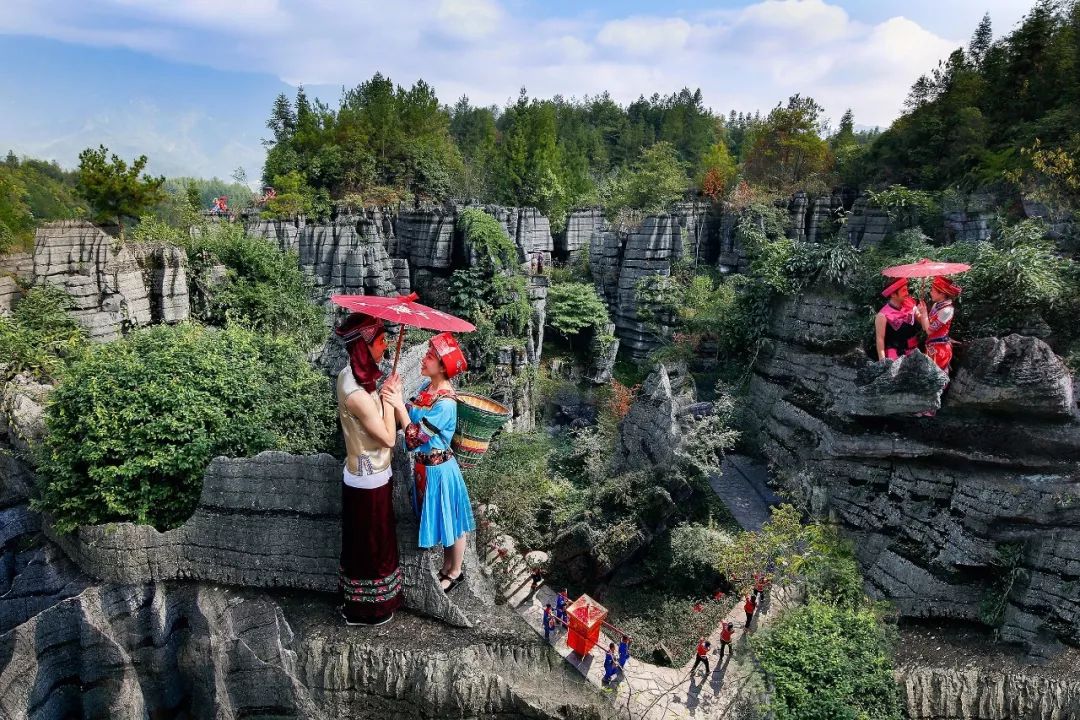 黄仙洞,“洞之山为黄仙山,相传黄石公憩此,故名。”洞内蜿蜒曲折,跌宕起伏,拥有边石池大厅、钙膜片边坝、石将军溶蚀石牙、三拱门景观四个世界级景观,尤其是洞厅内20000平方米的边石池,波澜壮阔,被誉为世界溶洞之一绝。洞内有一条“天梯”可达娘娘寨,这座隐匿于山峰间的古村,有茶香清雅,也有岁月静好。