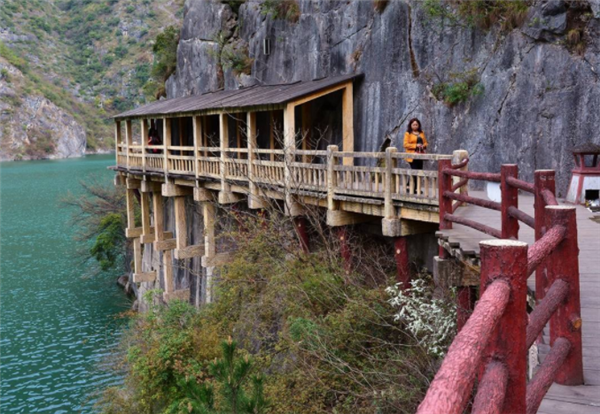 古色古香的栈道并不是历史古迹,而是现代的仿古建筑。其实这里就是修建石门水库后打造的独特风景区,水面辽阔,给人们带来一种壮阔的美感。漫步于栈道上,人们享受着美丽的风景,呼吸着新鲜的空气,可以放松心情,将心中所有的阴霾都清理出去。