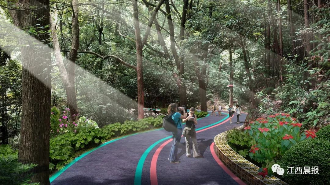 同时,建设一条湾里乐道,总长10.59公里,其中架空栈道4.85公里、落地步道5.74公里,并适当植入一些AI智能化元素,将湾里磨盘山森林公园打造一条融汇诗意生活与自然生态的快“乐”步道,营造生趣盎然的揽景游山绿色开放空间。