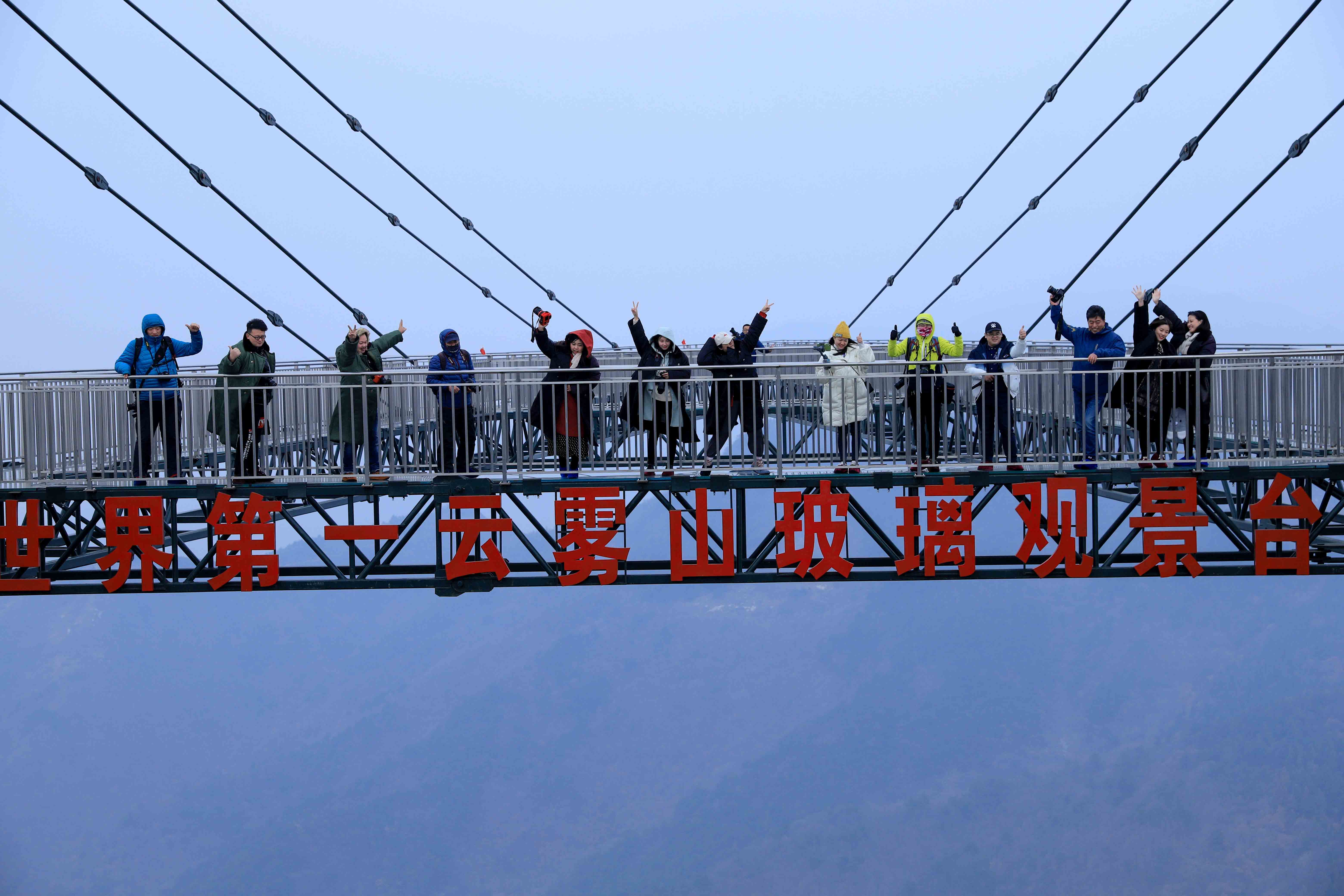 这个高空玻璃桥离地面有500多米,相当于166层楼高,桥下没有任何的支撑,走在上面绝对的心惊肉跳,不敢往下看,只是麻木的挪步向前走,到了最前端的观景台,发现还有轻微的晃动,紧张的心更是到达极限。