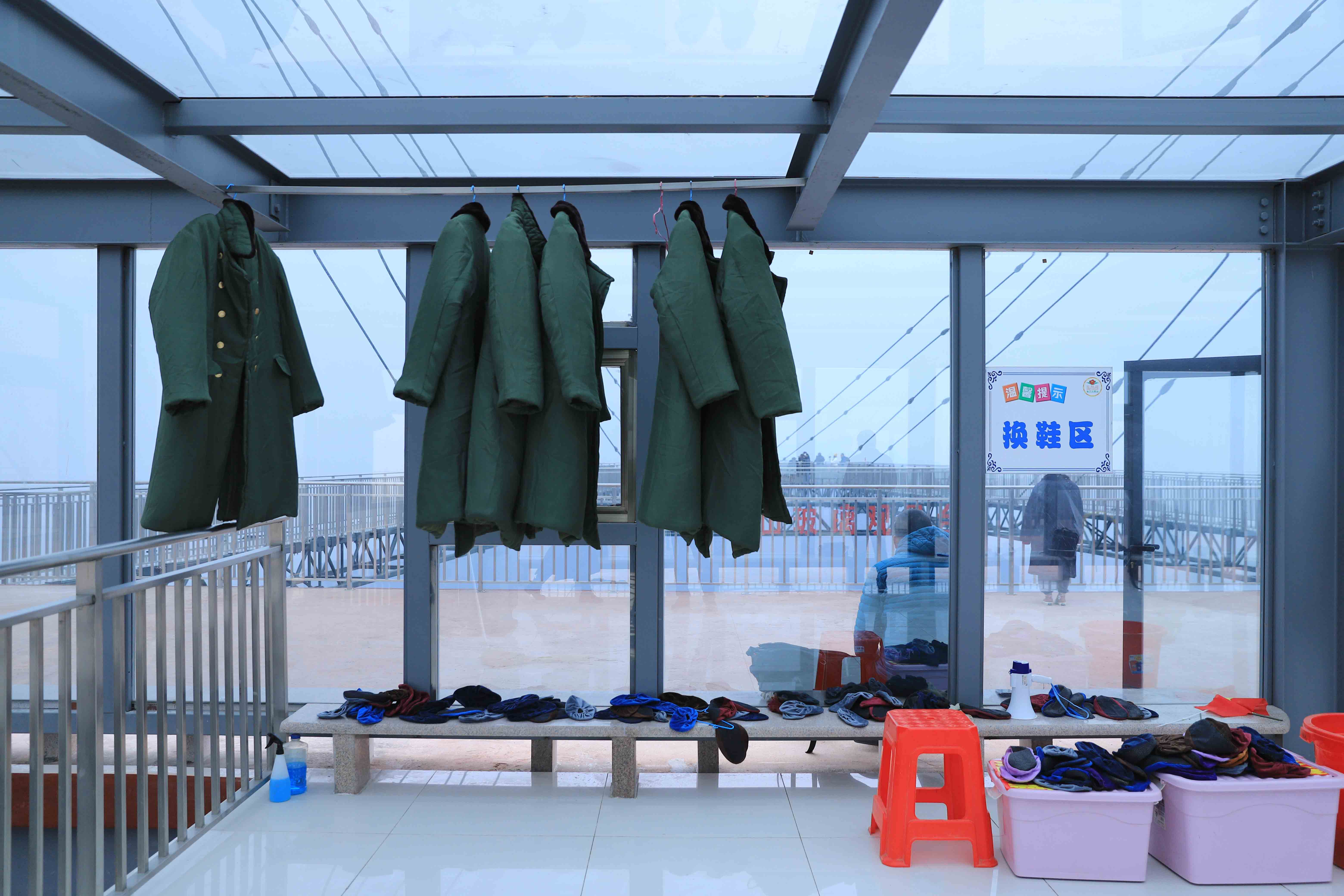 20多个人激动地冲上9米多高的三层高架平台,风大且冷,赶紧捂上平台为大家准备的军大衣,好家伙,好像一群东北人。