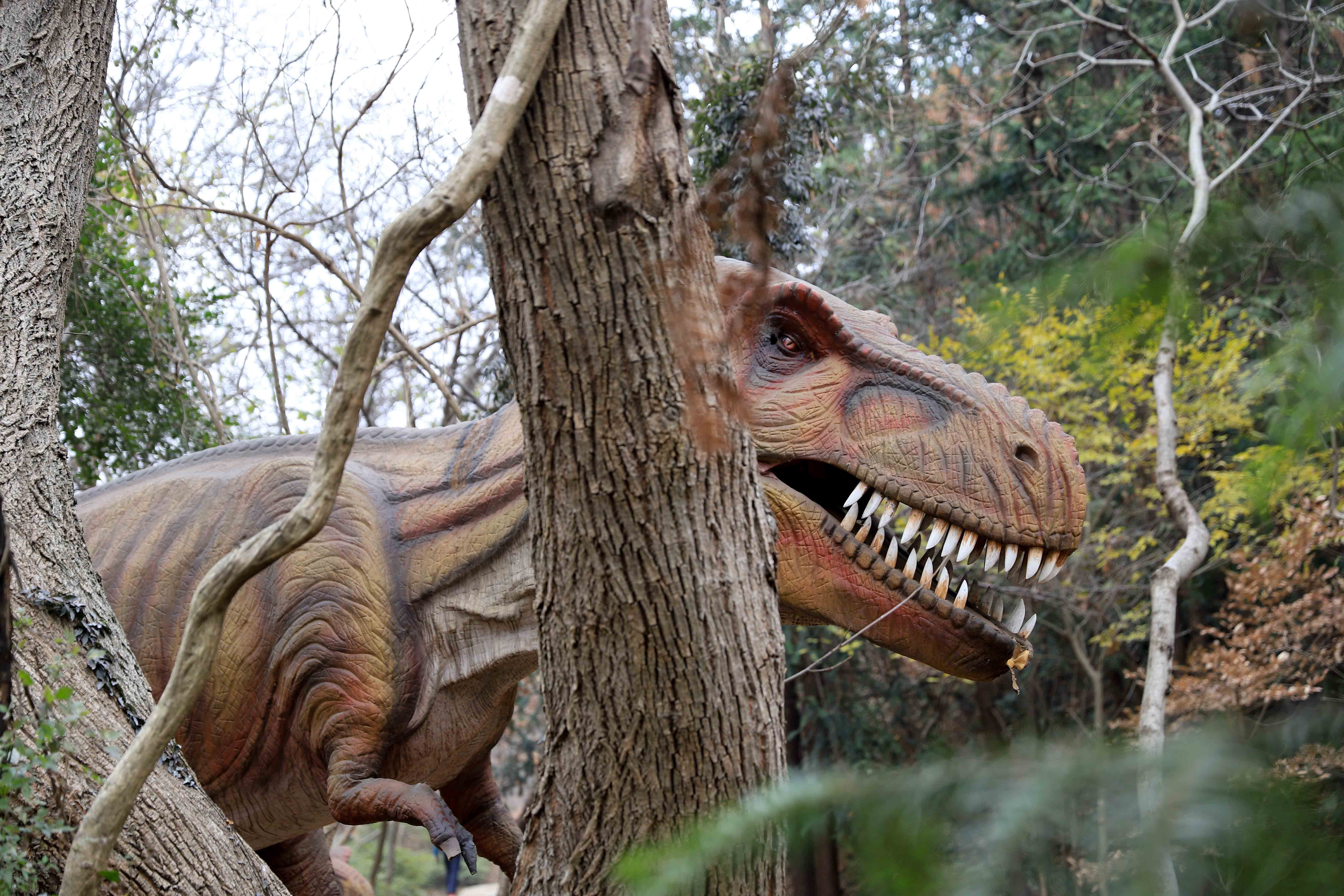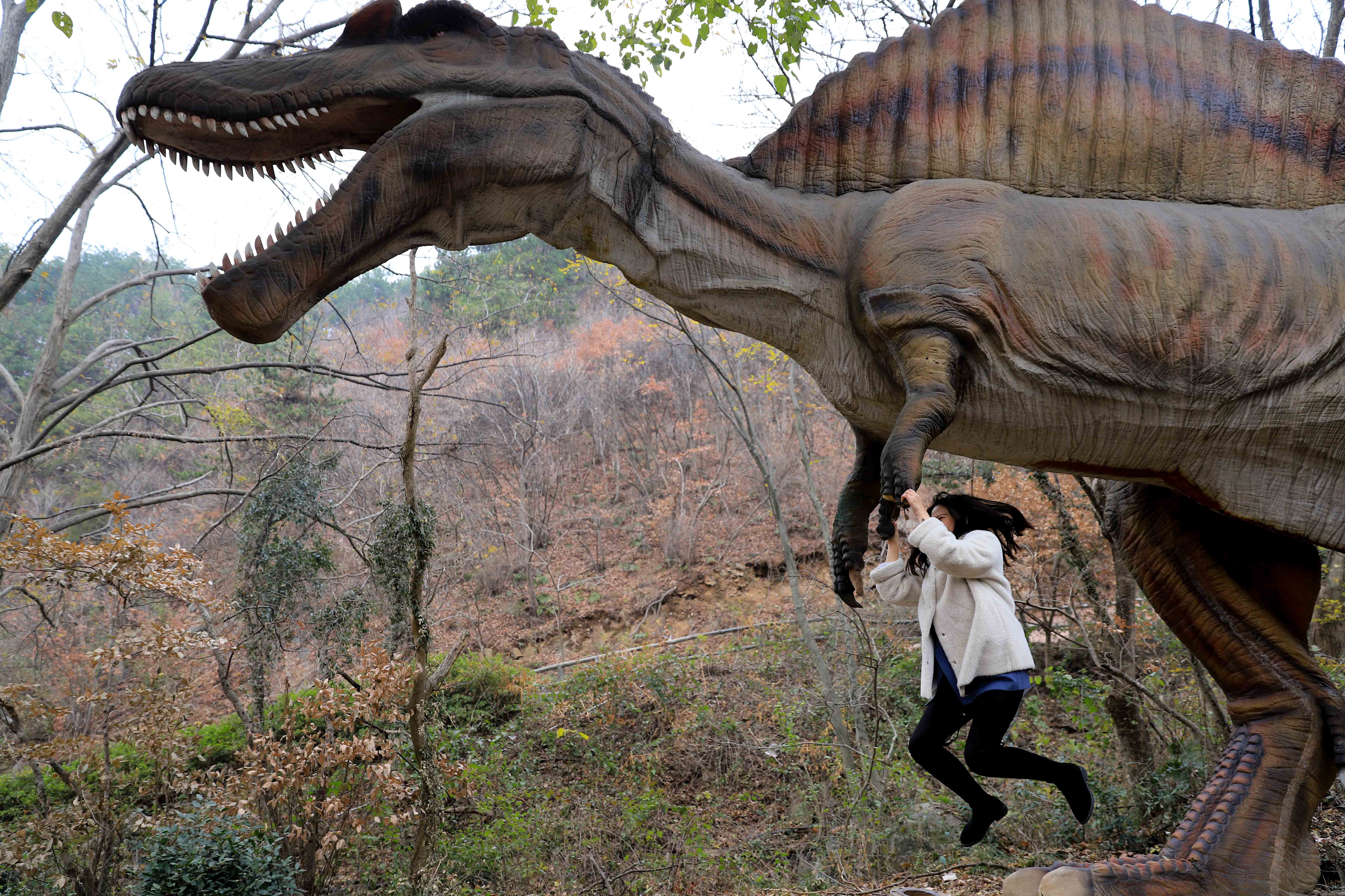 恐龙谷,是全国唯一的仿真恐龙游乐园,由观赏区、科普区和互动区组成,在茂密的树林里根据地形、场景分别布置了几十条大大小小的仿真声电恐龙,你搂着它头拍照时,它可能会突然扭过来,拉着它尾巴时,它可能会悄悄把你卷起来,你跟它对视时,它可能会突然叫出来,脑洞大开的戏精们还会现场编排一些与恐龙追逐、撕咬、对战的科幻大戏,狠狠的过一把当导演的瘾。