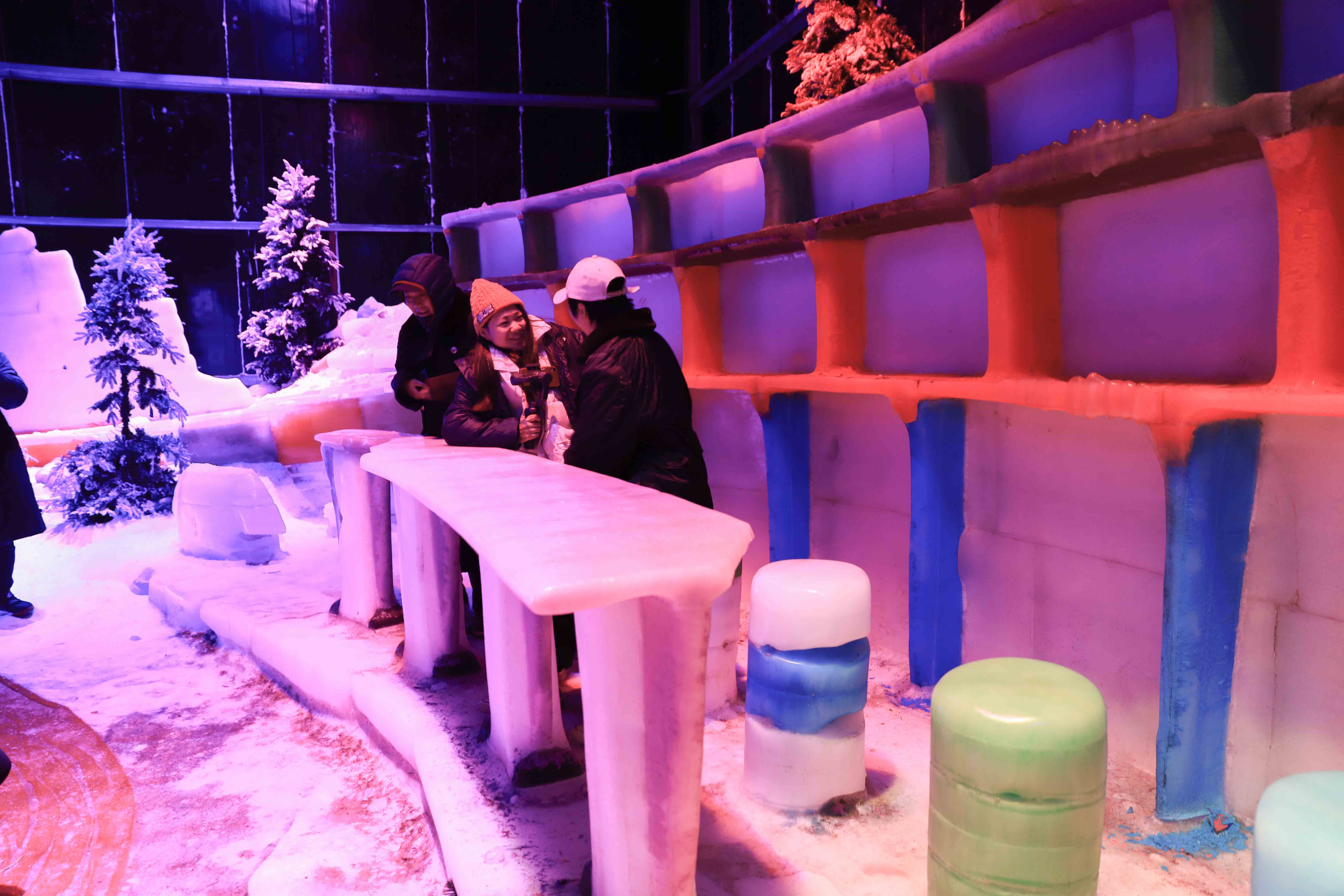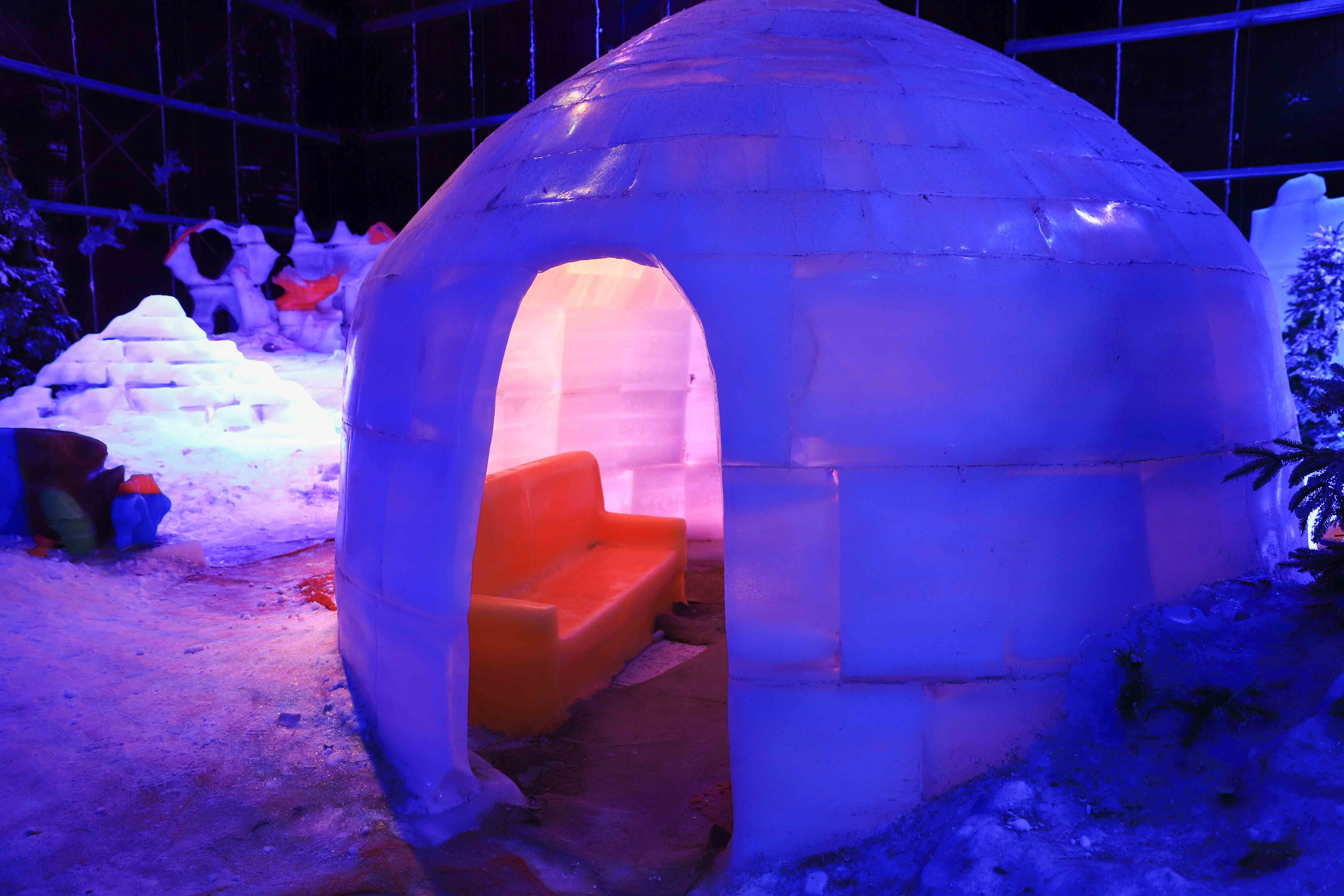 看冰雕不用到东北,不用到哈尔滨,云雾山新落成的冰雕馆一样能满足你冻成企鹅的愿望。再次捂起厚厚的军大衣,钻进冰窖一般的冰雕馆里,一个冰雪世界展现在眼前,大型的冰城、摩梭人冰屋、冰雕的埃菲铁塔、冰马、酒吧等等在霓虹灯的照射下,个个冰清玉洁,晶莹透亮,如同北方极寒里的童话世界,令人大开眼界,也佩服那些工匠们精湛的冰雕技艺,为我们营造了一个遥不可及却近在咫尺的北国风光。