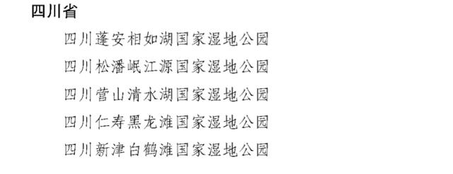 四川新增5处湿地公园名单
