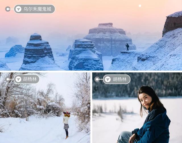 感受被雪花覆盖的魔鬼城,体验这雅丹风貌和浪漫雪花的融合,戈壁石柱被雪花掩盖住了不羁气息,多添一份柔和温婉。之后车观百里油田和野胡杨林,最后抵达克拉玛依。