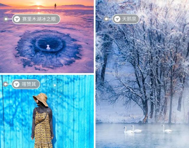 一年四季,风光无限的赛里木湖,只有在冬季,才是最令人着迷的时刻,深蓝色的湖水结冰,晶莹剔透,冰之眼留下这一颗大西洋的眼泪。途径果子沟大桥,前往天鹅泉,天鹅相伴雾凇环绕,最美童话世界不过如此。到达伊宁的小摩洛哥喀赞其结束这一次冬季梦幻之旅。