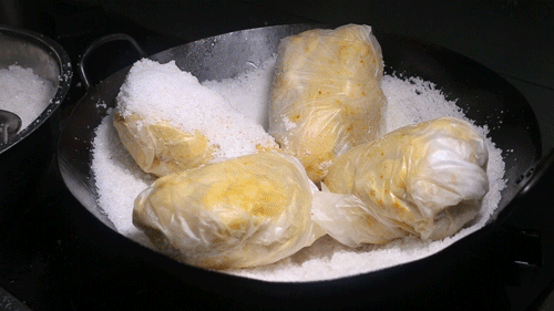 “盐焗”这种特殊的制作手法是客家族群的独特烹饪技艺,更是祖辈们一种巧手天工的偶作。