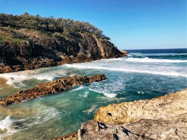 北岛是一个备受当地人青睐的相对独立的小岛,相较于黄金海岸平坦海岸线的风景,北岛是别有一番味的。这个当地人私藏的地方,是普通的旅行社不会提及的,登岛需要乘坐那种很大的渡船,将人和车一起运到岛上,然后,游人们自己开着车开启自由的北岛之旅。