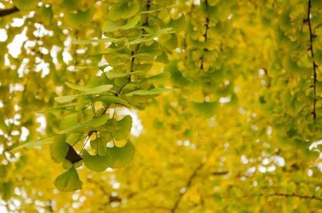 特别是在这秋冬更替、小雨绵绵的今日,银杏树下,拈起一片泛黄的枝叶,就像拈起了整个冬日的温柔。