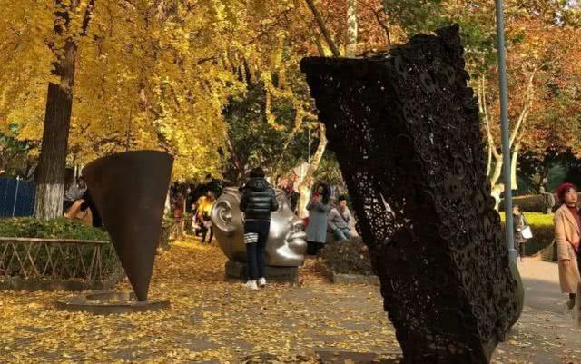 校园内造型迥异的教学楼和雕塑,配合秋冬黄了的银杏,就好似走进了童话世界。