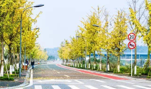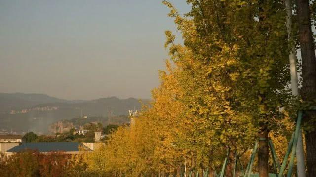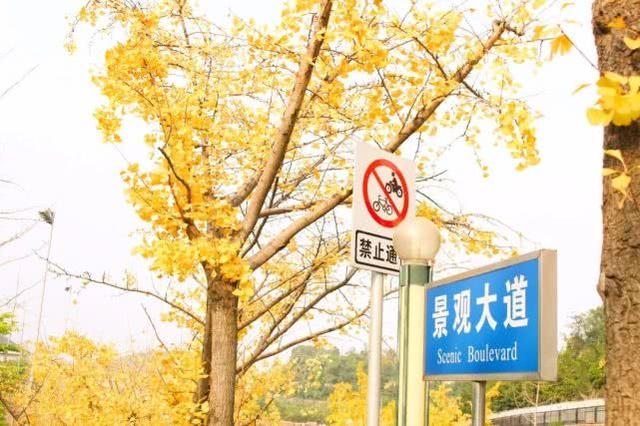 重庆工商大学已变成金黄的海洋,偌大的校园里飘扬着黄灿灿的银杏。更方便的是,这里乘坐轻轨便可直达。