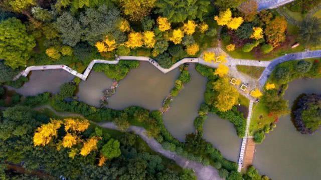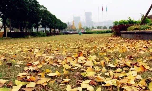 上百棵银杏树逐渐泛黄,叶子随风飘落,草地上铺着一层厚厚的银杏叶,实在是太美了。
