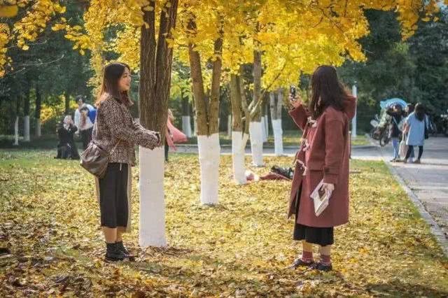 师大的美女们下课后都喜欢捡银杏叶,那画面太美让人都看呆了。