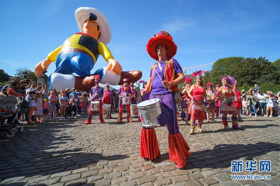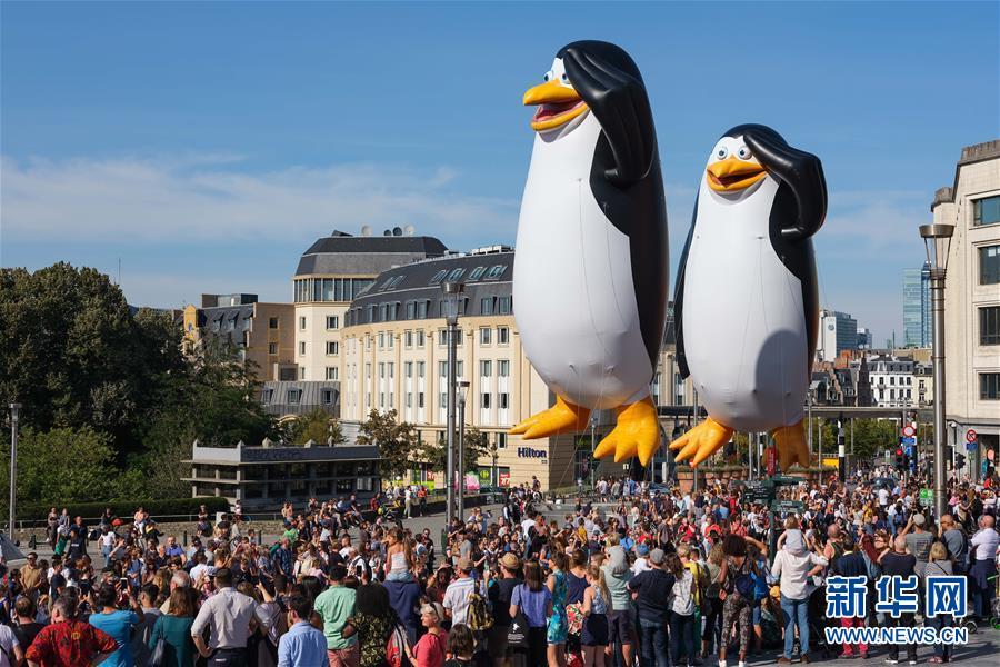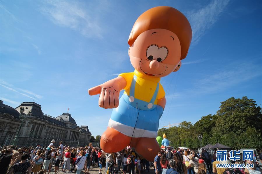 9月15日,人们在比利时首都布鲁塞尔参加卡通气球大巡游。 当日,布鲁塞尔举行第十届布鲁塞尔漫画节卡通气球大巡游,形态各异的卡通气球从街头巷尾穿行而过,吸引大批市民和游客。 新华社记者 张铖 摄