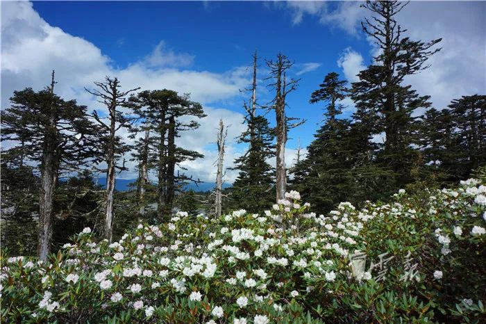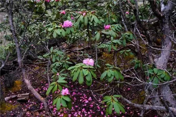 这里的高山杜鹃成林而布,以花冠硕大、色泽鲜艳的黄杜鹃、白杜鹃和红杜鹃居多。白的高雅纯洁,黄的沉稳而又不掩饰美的格调,红的热烈绚烂,交合成无声的花的合唱。