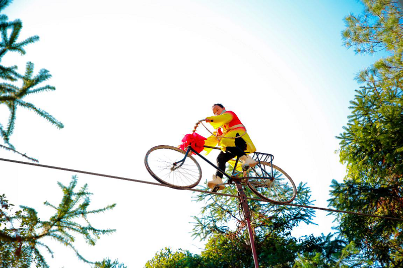 高空特技作为中国传统文化之一,距今已有两千多年的历史,以其精湛的技艺和惊险的表演,融杂技、歌舞、体育为一体。此次九龙江高空特技节,一条细钢丝,凌空于山谷之前,山风吹过,左右晃动幅度达1米以上,呈现出一场惊险刺激的视觉盛宴。