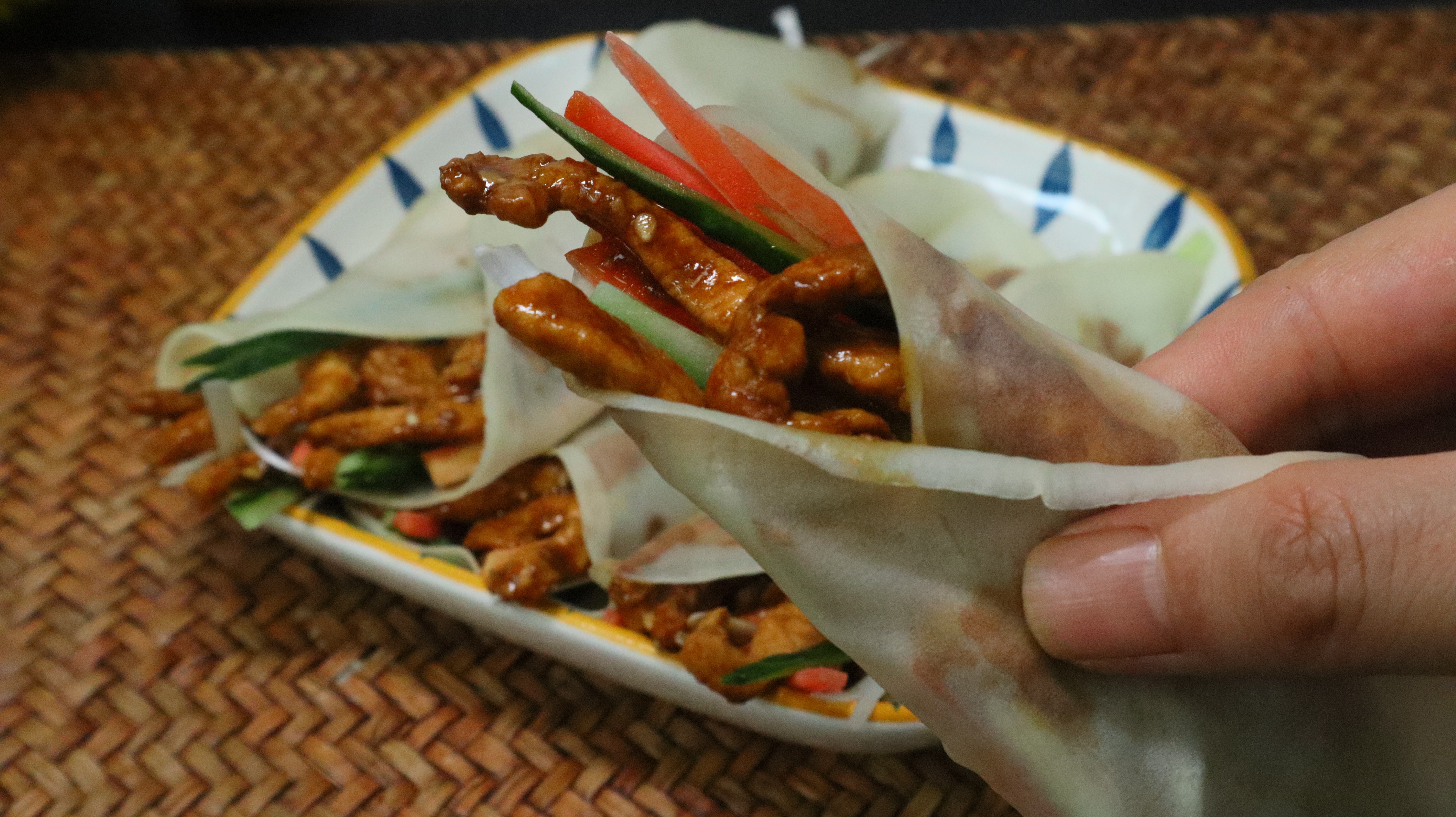 京酱肉丝通常选用里脊肉,卷上蔬菜以及豆皮,口感香而不腻,风味绝佳。不过今天要给大家分享一道升级版的做法,口感更加嫩滑,而且似乎有一种吃烤鸭的感觉,吃过的人都会赞不绝口。