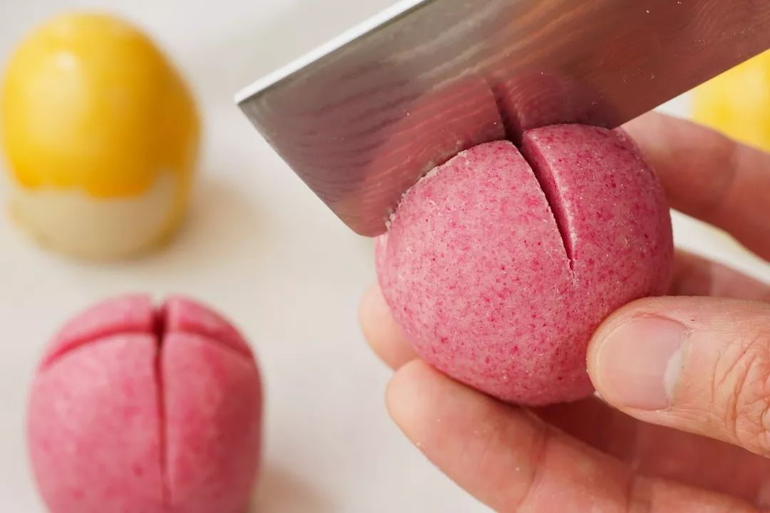 3、用锋利小刀在顶部切十字口(小刀需刚好切到馅心的位置,这样开口更美丽)。