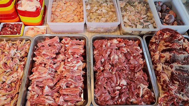 琳琅满目的新鲜生料明档现切