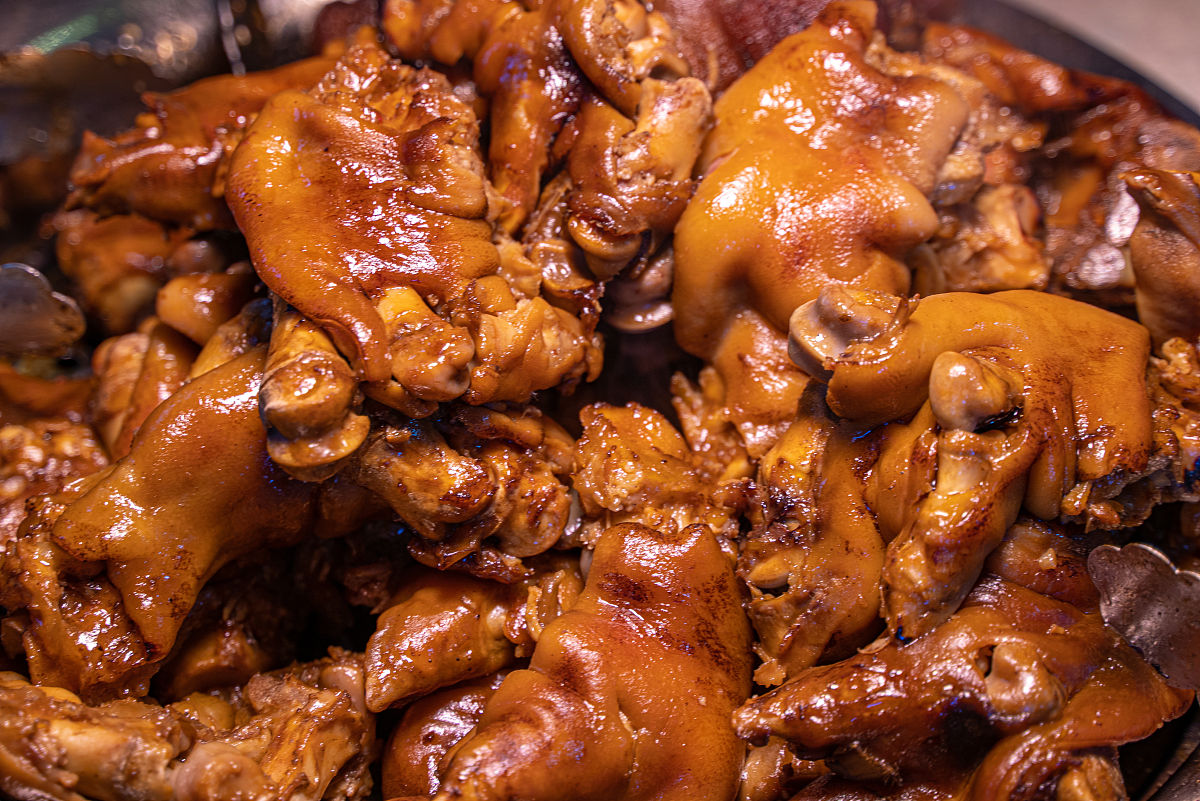 每个品种都这样操作,猪蹄卤好直接上桌。当然,口味不对我还备有油碟,客人赶时间,一般不会计较这些。