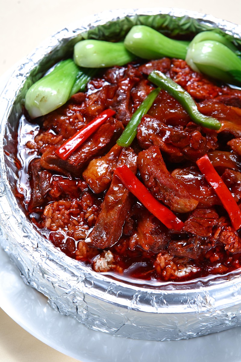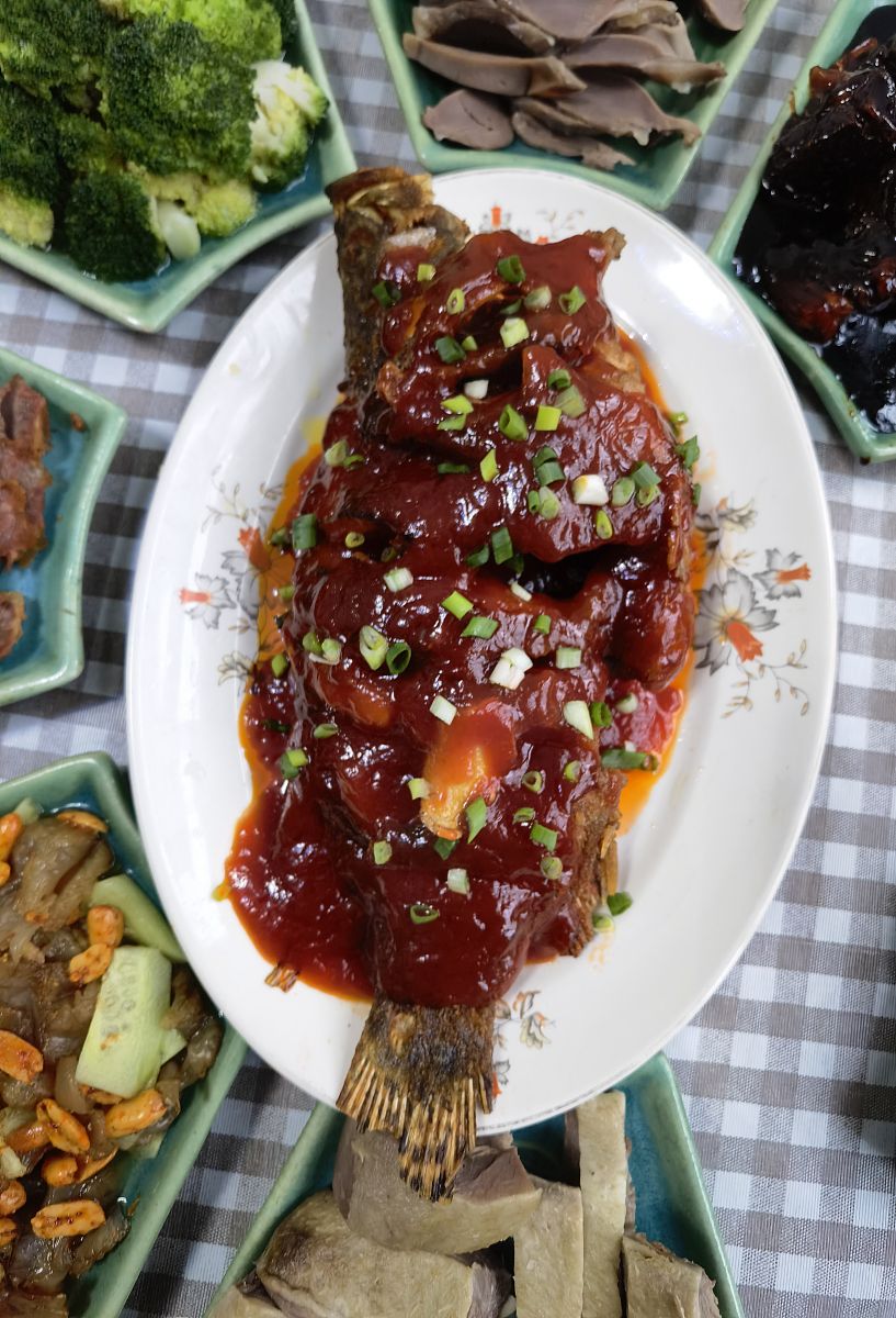 菜单传入后厨,我开始做鸡鸭鱼,爆香姜、葱、蒜,加入豆瓣酱炒出油,再放入食材加调味品红烧,出锅前撒把辣椒圈,加明油炒匀,搞定。