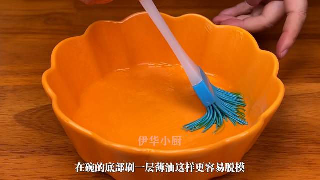 接着准备一个碗,在碗的底部刷一层薄油,这样更容易脱模