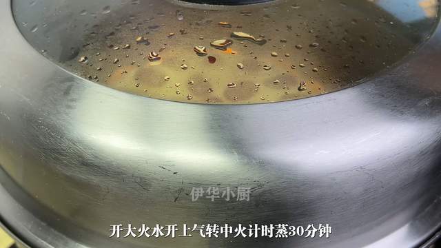 开大火,水开上气转中火,及时蒸30分钟,时间到了,先关火焖三分钟后再打开盖子,这样可以防止发糕塌陷回缩