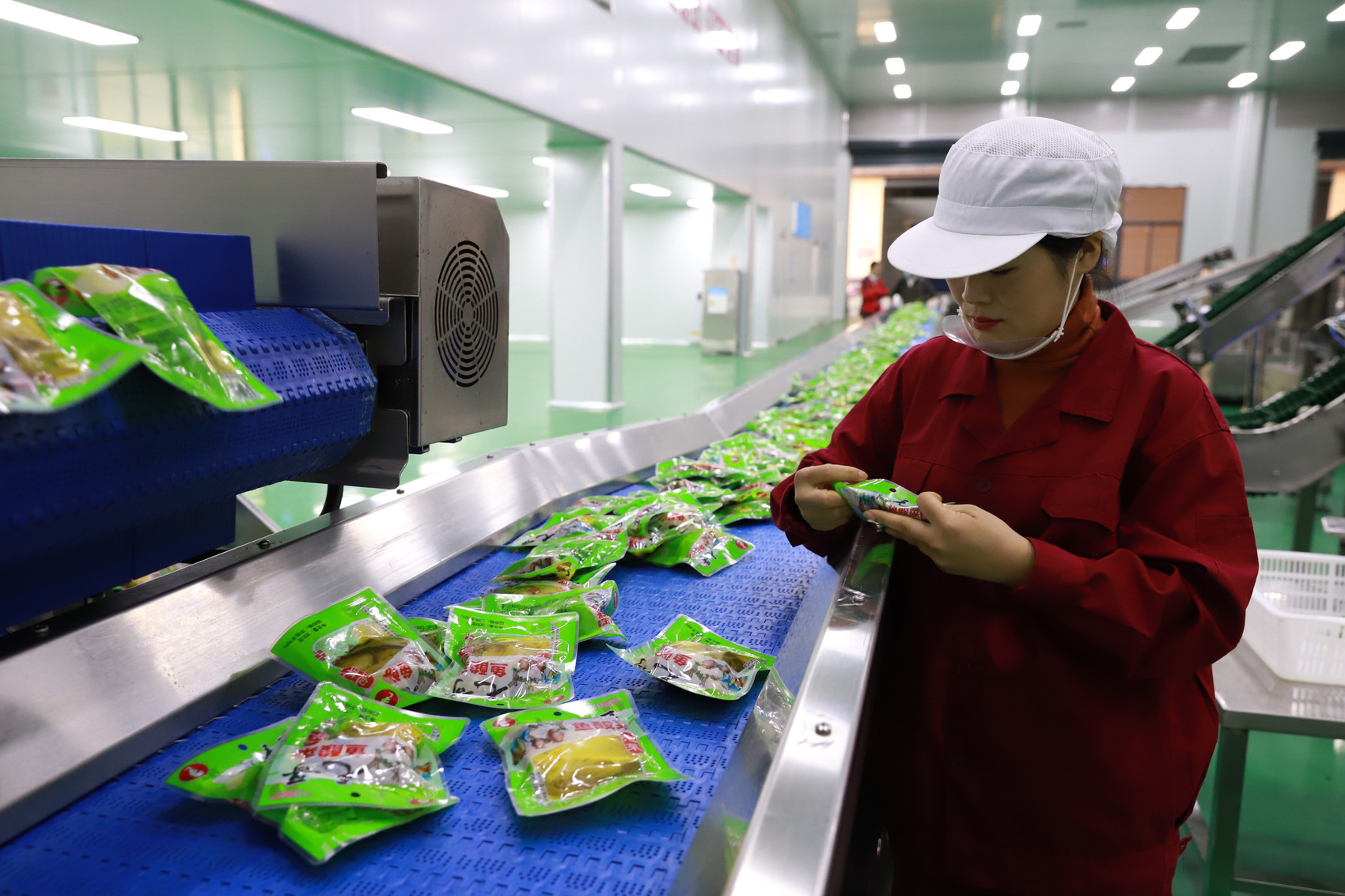毛哥食品生产车间的工人正在检查即将出厂的泡菜。黄姝蓓 摄