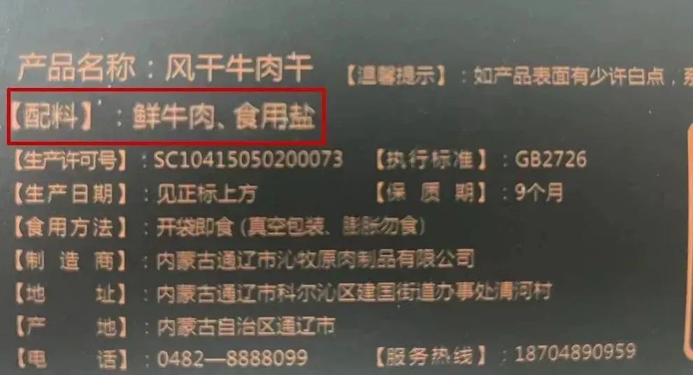 如此韧与嫩并存的奇妙口感,导致本所在刚吃到这款牛肉干的时候,还对它有所怀疑,担心是添加了什么特殊成分,结果一看配料表,竟然只有鲜牛肉和食用盐!(好吃的原因后面说)