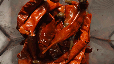1、100g干辣椒清水煮沸转小火,盖盖焖煮至干辣椒膨胀饱满(约1小时)后捞出,用搅拌机搅碎备用。