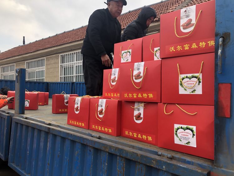 12月23日上午,记者跟随爱心企业来到村里采购地瓜,村民们看到后纷纷放下手中的活,自发赶来帮忙分拣、打包、装车。他们当中,有不少是上了年纪的老人,寒风中大家的脸和手冻得通红,但每个人都兴高采烈,忙得不亦乐乎。当晚,满满一车爱心地瓜被运送到市区的青岛沃尔富森金属材料有限公司和青岛富邦红木城暂时存放,准备陆续发放到企业员工和客户手中。