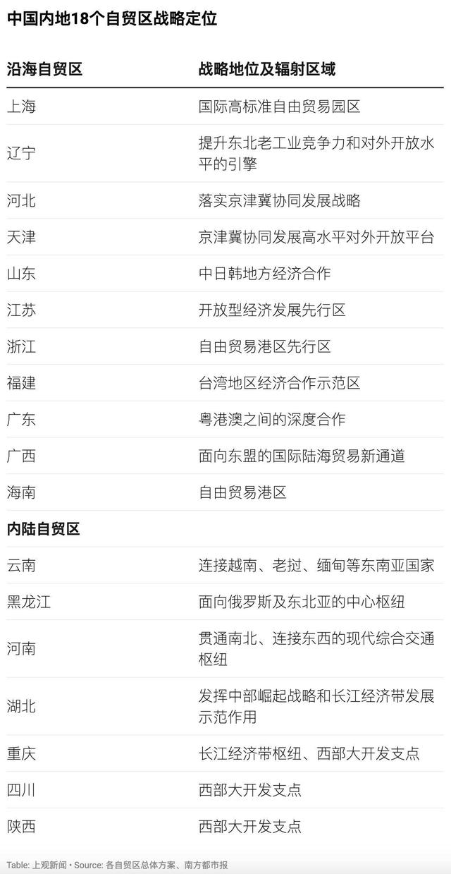 18个自贸区遍地开花,细读其战略、定位、布局,从中或可发现中国新一轮对外开放的重点所在。