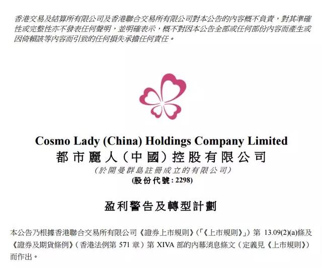 2019年12月23日,都市丽人(中国)控股有限公司发布盈利警告及转型计划