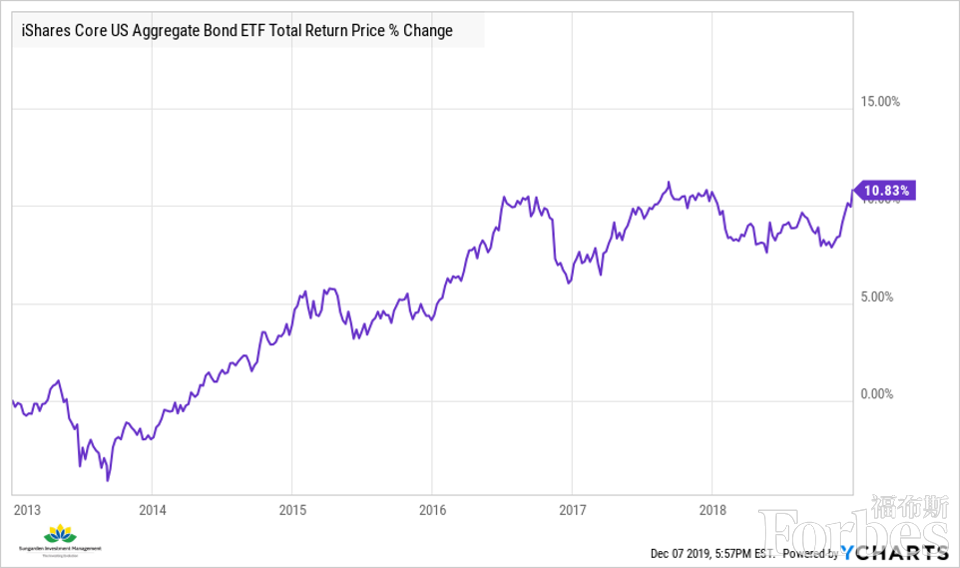 进一步抽丝剥茧,您大概就能认识到笔者看到的问题。上图显示,2012年底至2018年底的6年时间,债券回报率总计不到11%。也就是说,每年不到2%。