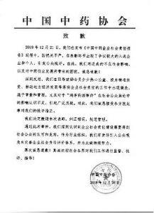 12月26日,针对此前发生的《中国中药企业社会责任报告》发布引发相关舆情事件,中国中药协会正式发布致歉函,决定撤销本次表彰,纠正错误,规范管理。