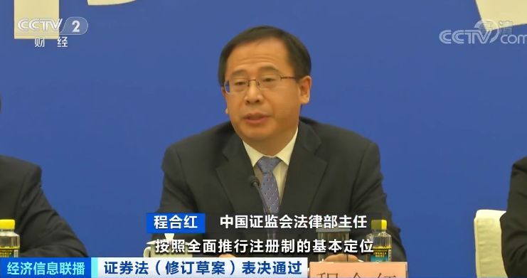 中国证监会法律部主任 程合红:按照全面推行注册制的基本定位,对证券发行注册制,作了比较系统完备的规定。